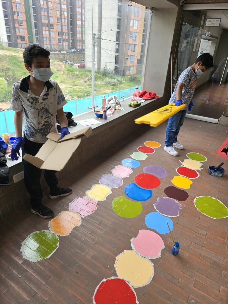 Children aged 9 to 12, focusing on supporting the beautification of certain areas of the foundation. Three educational games were painted on the floor to reinforce learning in mathematics, values, and concentration. Additionally, some of the common railings were painted, and we left materials so they could continue painting other areas in need of intervention.
